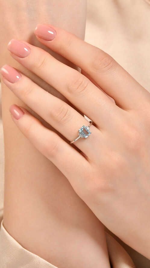 Mavinin huzurunu parmağınızda hissedin. Bu Aquamarin Yüzük zarafetin en saf hâlidir.