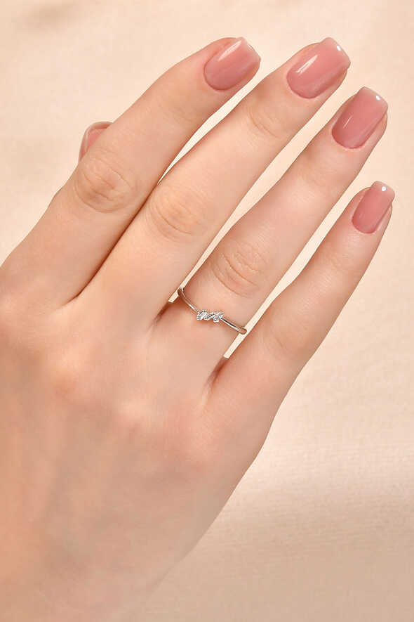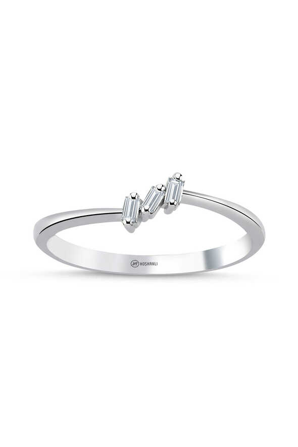 Pırlanta baget tasarım yüzük, zarif hatlarıyla modern kadınların vazgeçilmez takılarından biridir. 14 ayar beyaz altınla üretilen bu model, 0.07 karat pırlantanın baget kesimiyle ışıltıyı geometrik bir dengeyle sunar.