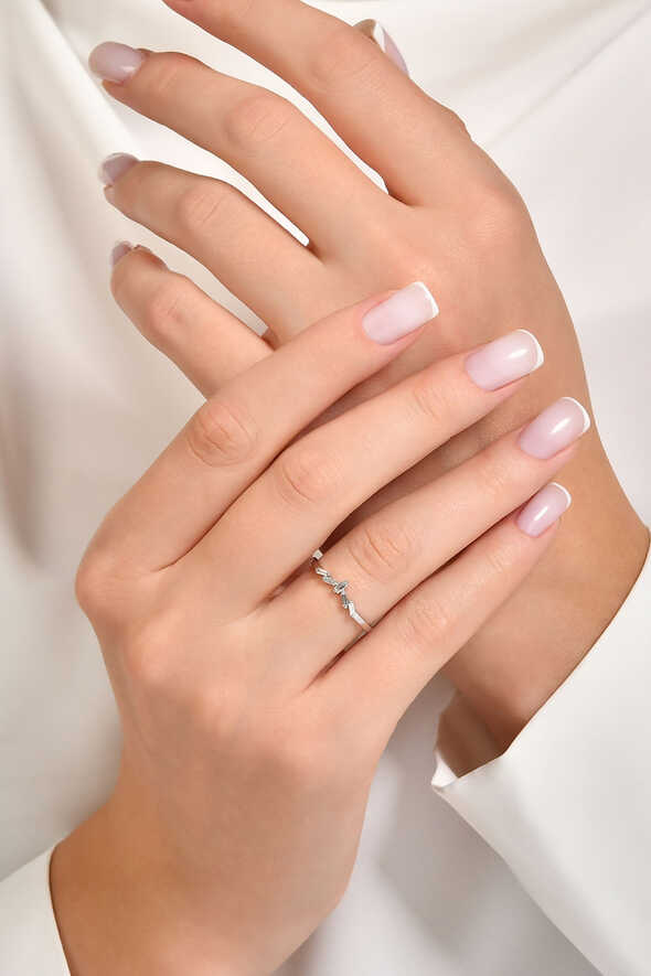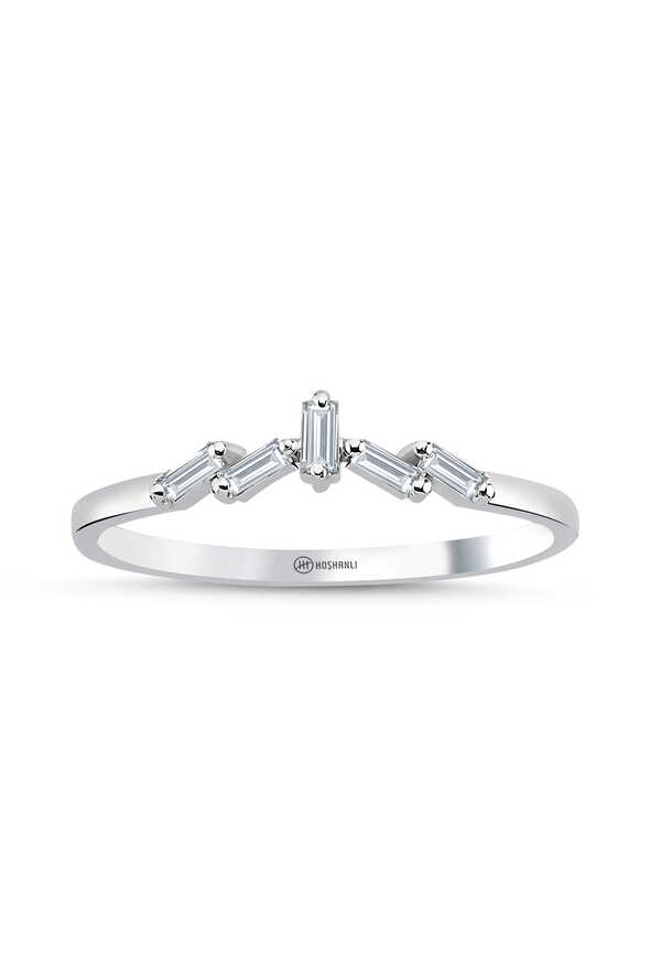 0.09 karat pırlanta baget yüzük, sade formu ve geometrik taş dizilimiyle modern bir zarafet sunar. 8 ayar beyaz altından üretilen bu model, günlük kullanımdan özel davetlere kadar her anınıza ışıltı katar.