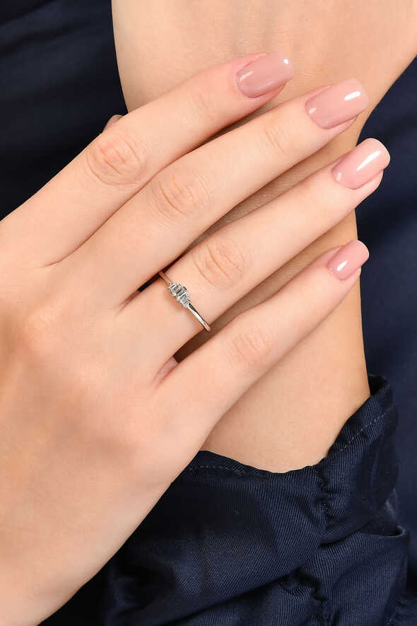 Sade zarafetiyle dikkat çeken bu baget tasarım pırlanta yüzüğü hemen sipariş edin, ışığınızı her an taşıyın.