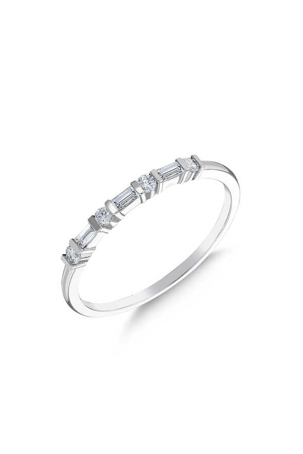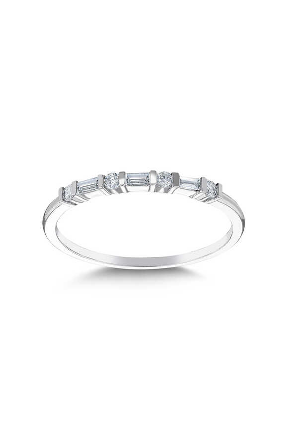 0.15 Karat Pırlanta Baget Tasarım Yüzük, modern çizgileri ve zarif ışıltısıyla minimalist şıklığın sembolüdür. 8 ayar beyaz altının sade formu, pırlantanın zarafetiyle birleşerek günlük kullanım için mükemmeldir.