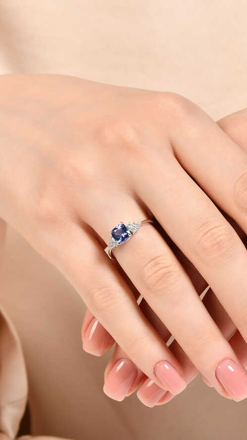 Tanzanitin mistik tonlarını parmaklarınızda taşıyın. Bu pırlanta tanzanit yüzüğü şimdi sipariş edin.