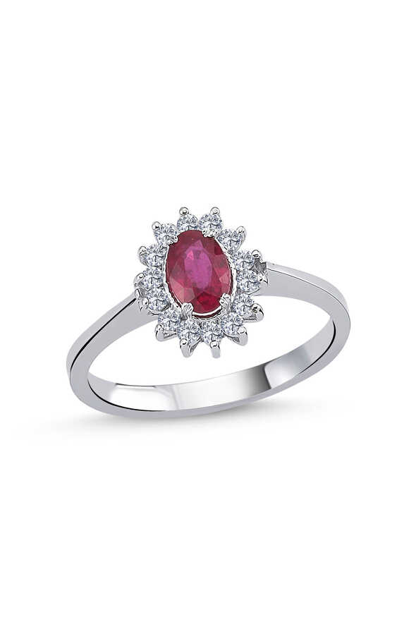 0.18 Karat Pırlanta Yakut Yüzük, aşkın kırmızısını pırlantanın zarif ışıltısıyla buluşturur. 14 ayar beyaz altın zemin üzerinde yer alan yakut taşı, güçlü bir tutkunun simgesidir.