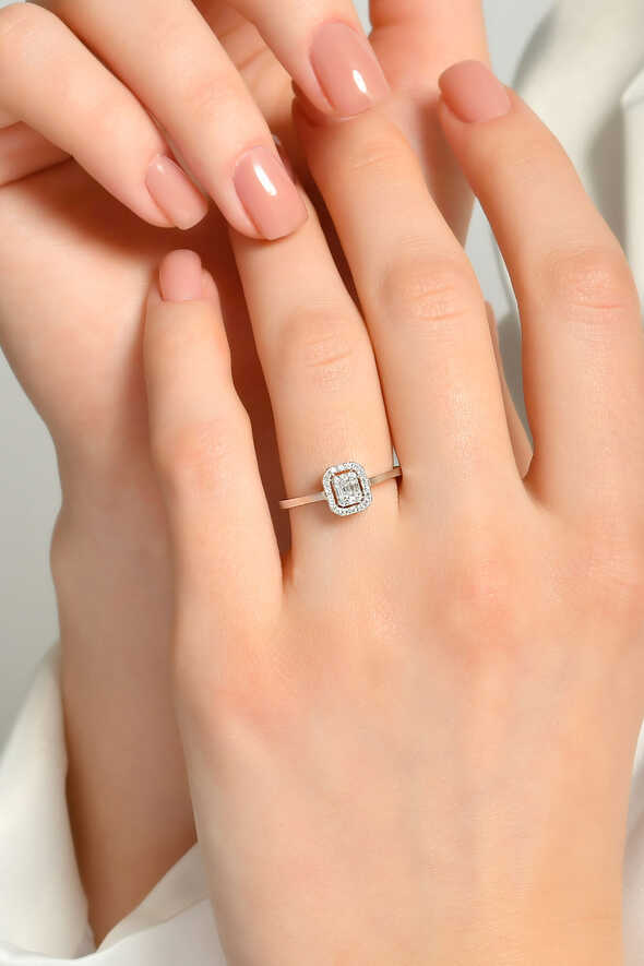 0.20 Karat Pırlanta Baget Yüzük, sade ama etkileyici tasarımıyla zarif bir görünüm sunar. 8 ayar beyaz altının modern dokusu, baget pırlantanın net çizgileriyle birleşerek ışıltılı bir bütünlük oluşturur.