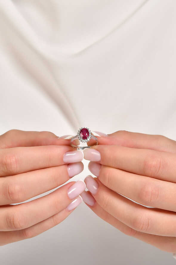 Aşkın kırmızı ışıltısını parmağınızda taşıyın. Bu Yakut Yüzük ile zarafetiniz her ortamda fark edilsin.