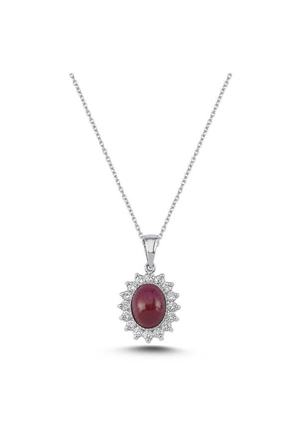 0.24 Karat Pırlanta Yakut Kolye, aşkın sembolü kırmızı yakutun parlak enerjisini pırlantanın zarafetiyle bir araya getirir. 14 ayar beyaz altın, bu uyumu kusursuzca tamamlar.