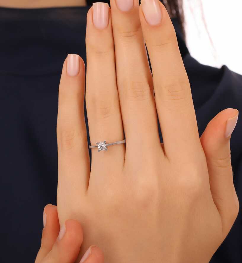 0.30 karat pırlanta tektaş yüzük, klasik şıklığın en özel temsilcilerinden biridir. 14 ayar beyaz altın üzerine yerleştirilen tektaş pırlanta, G renk ve VS-SI berraklığıyla göz alıcı bir parlaklık sunar. Hem günlük kullanımda hem de özel anlarda zarif bir stil tamamlayıcısıdır.