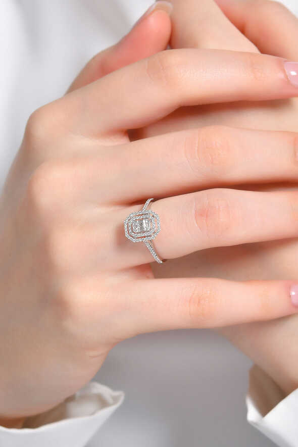 0.32 Karat Baget Pırlanta Yüzük, sade çizgileri ve net ışıltısıyla zarif bir estetik sunar. 14 ayar beyaz altının modern dokusu, baget taşların dengeli formuyla birleşerek göz alıcı bir bütün oluşturur.