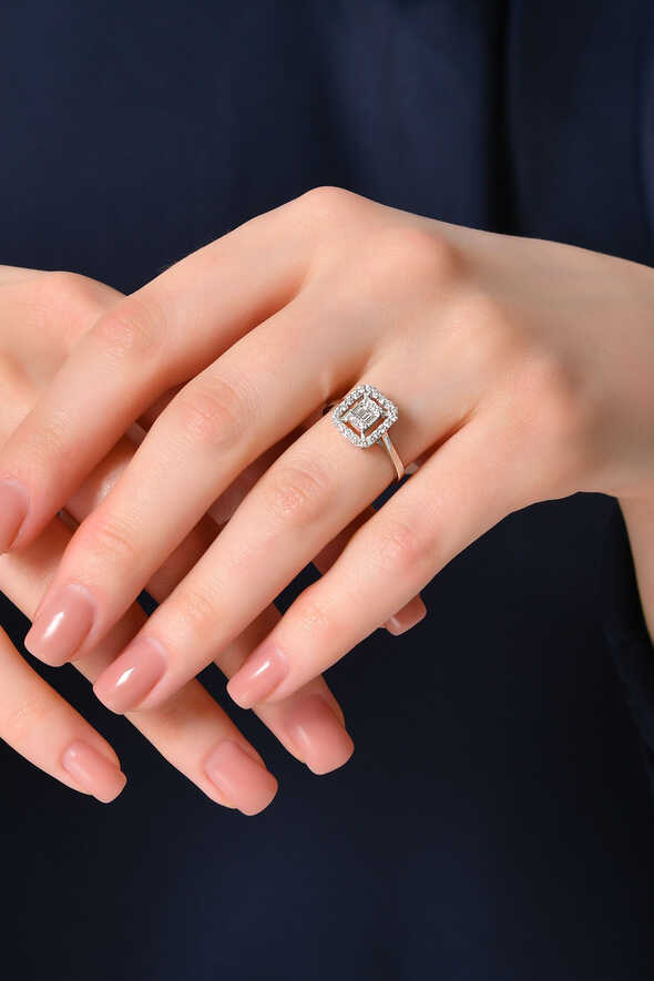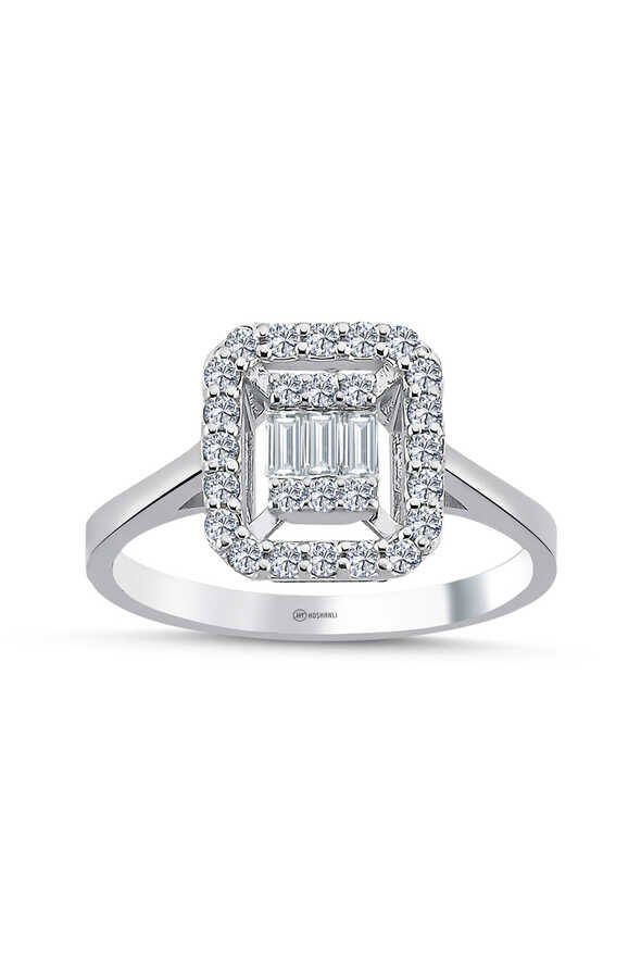 0.38 Karat Pırlanta Baget Yüzük, zarafetiyle dikkat çeken klasik bir tasarımdır. 14 ayar beyaz altının ışıltısı, baget taşların düzenli dizilimiyle birleşerek sade ama etkileyici bir görünüm sunar.