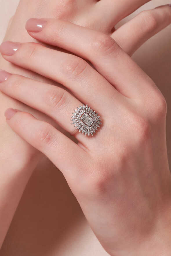 0.46 karat pırlanta baget yüzük, ışıltılı taş dizilimiyle zarafetin en güçlü halini sunar. 14 ayar beyaz altın yapısı, pırlantaların parlak kesimiyle mükemmel bir uyum içindedir. Özel günlerde fark yaratmak isteyenler için ideal bir seçimdir.