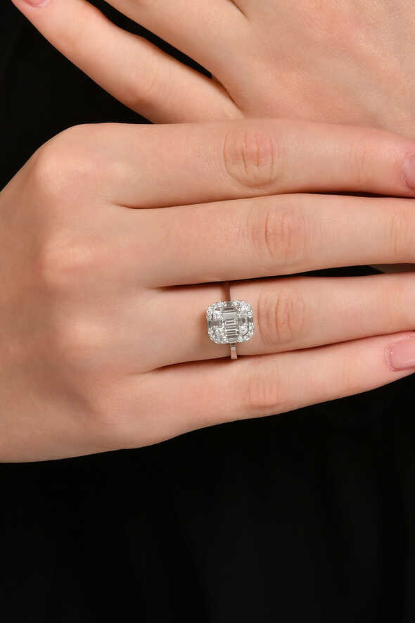 0.53 Karat Pırlanta Baget Yüzük, modern zarafetin klasik ışıltıyla birleştiği özel bir tasarımdır. 14 ayar beyaz altın üzerine ustalıkla yerleştirilen toplam 0.53 karat F-G renk ve SI1 – VS-SI berraklıktaki pırlantalar, göz alıcı bir parıltı sunar. Baget kesim merkez taşı ve etrafındaki parlak taş dizilimiyle yüzük, sade şıklığın en zarif halini temsil eder.