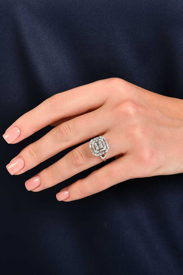 0.54 Karat Pırlanta Baget Yüzük, zarif hatları ve etkileyici ışıltısıyla klasik pırlanta tasarımına modern bir yorum kazandırır. 14 ayar beyaz altının parlaklığıyla birleşen baget taşlar, göz kamaştırıcı bir uyum sunar.