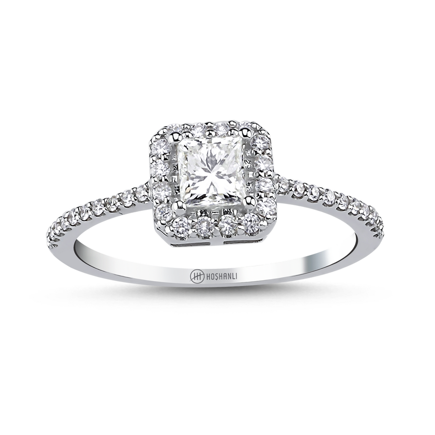 Asaletin ve zarafetin birleştiği bu 0.75 karat prenses kesim yüzük ile ışıltınızı yansıtın.