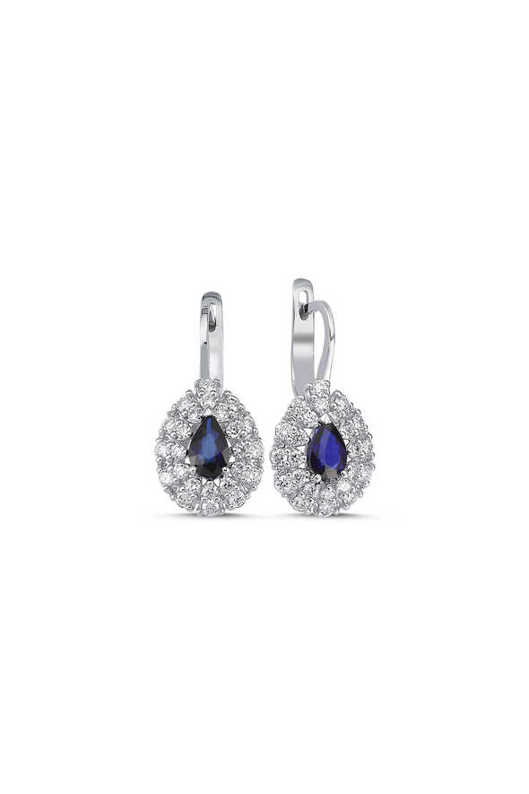 0.95 Karat Pırlanta Safir Küpe, zarafetin ve asaletin mükemmel dengesiyle tasarlandı. 14 ayar beyaz altın gövde, taşların parlaklığını kusursuz biçimde yansıtır.