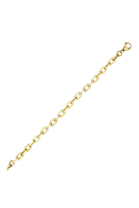 Altın zincir bileklik, modern tasarımıyla klasik zincir formlarına zarif bir dokunuş katar. 14 ayar altınla hazırlanmış bu model, 6.30 gram ağırlığıyla sağlam ve estetik bir kullanım sunar. Günlük şıklığı ve özel davetleri tamamlayan ideal bir seçimdir.
