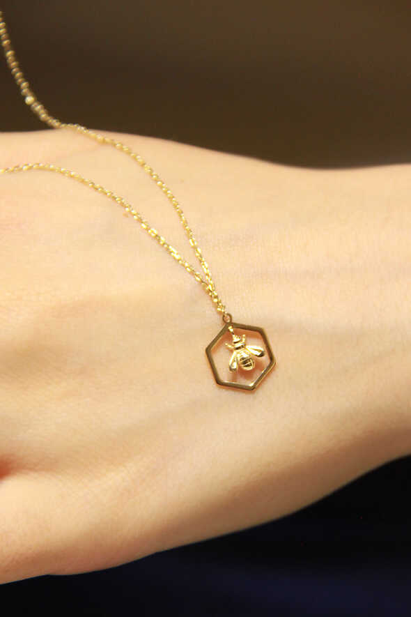 Doğanın enerjisini boynunuzda taşıyın. Bu Arılı Altın Kolye zarif bir doğa dokunuşudur.