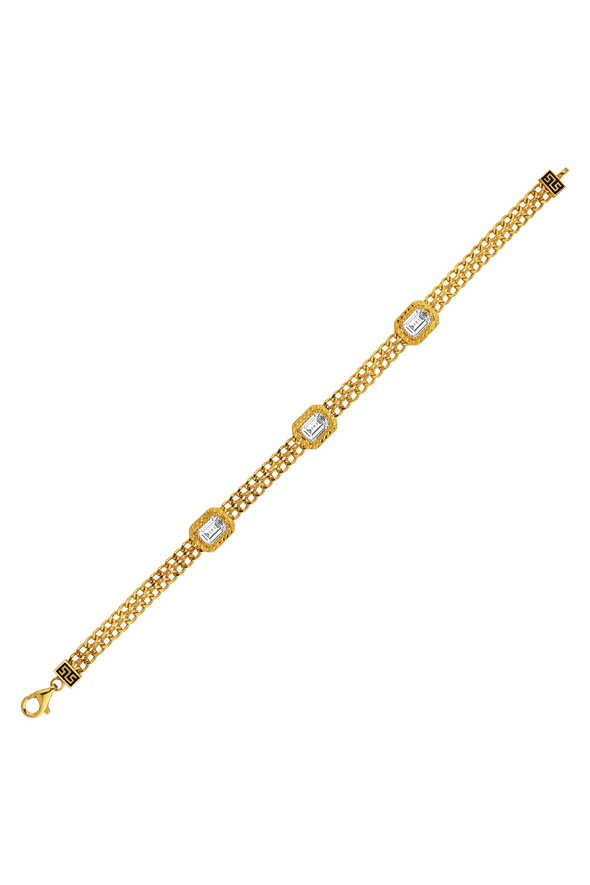 Baget taşların ışıltısını yansıtan bu 22 ayar altın bilekliği şimdi sipariş edin.