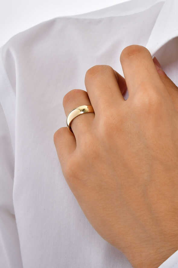 Geniş yüzeyiyle güçlü bir duruş sergileyen bu 14 ayar altın bombeli alyansı şimdi sipariş edin; sevginizi zarif bir detayla ölümsüzleştirin.