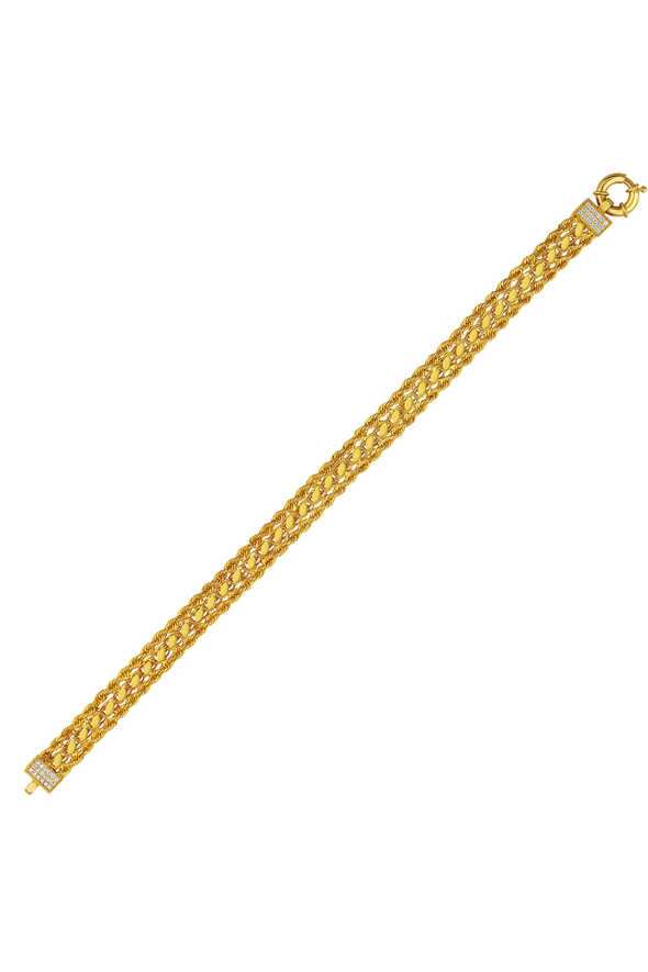 Burma detaylı altın zincir bileklik, klasik burma deseninin zarafetini modern zincir formuyla birleştirir. 14 ayar altınla üretilmiş bu model, 7.91 gram ağırlığıyla sağlamlığı ve şıklığı aynı anda sunar. Günlük hayatta da özel davetlerde de zarif bir tamamlayıcıdır.