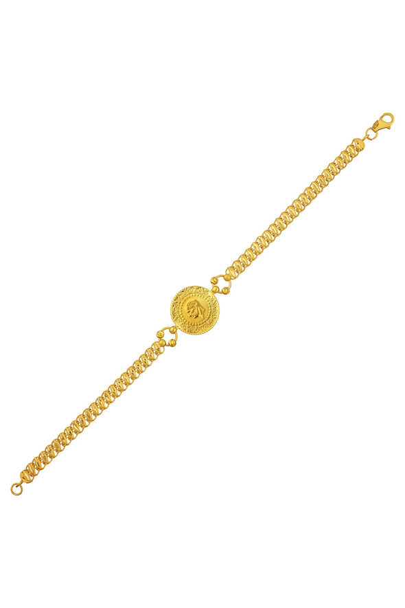 Geleneksel zarafeti simgeleyen bu 22 ayar çeyrekli altın bilekliği şimdi sipariş edin.