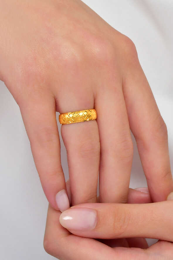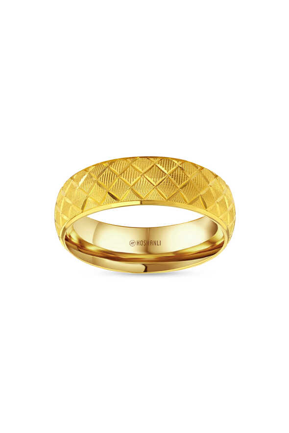Farklı ve modern detaylarıyla öne çıkan desenli altın alyans ile sevginizi zarafetle taçlandırın.
