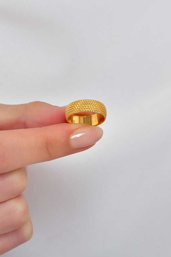 Dokulu altın alyans, yüzeyindeki zarif dokular ve güçlü duruşuyla dikkat çeker. 22 ayar kalitesiyle üretilmiş, 3.40 gram ağırlığıyla sağlamlığı ve zarafeti bir araya getiren özel bir modeldir. Günlük şıklıkta da özel davetlerde de fark yaratır.