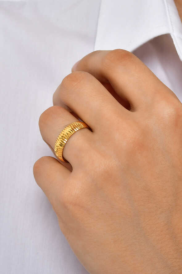 Özel dokulu yüzeyiyle farklılık katan bu 22 ayar dokulu altın alyansı hemen sipariş edin. Şıklığınızı modern bir dokunuşla tamamlayın.