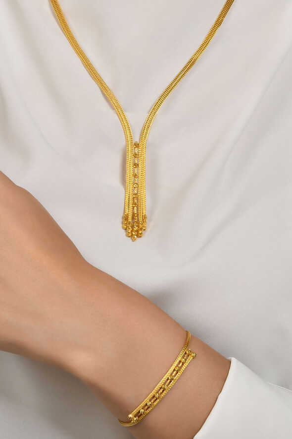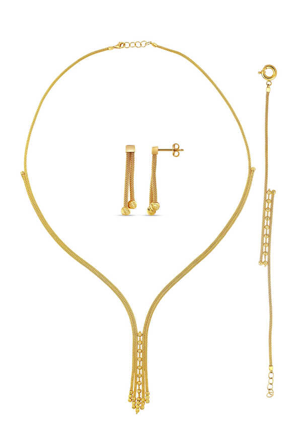 Klasik dorika ışıltısına sahip bu altın üçlü seti hemen sipariş edin.