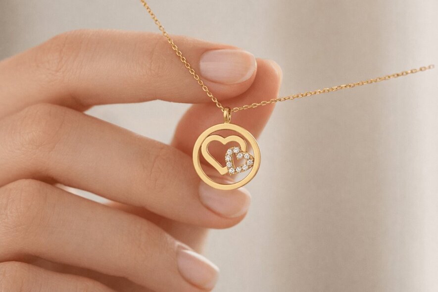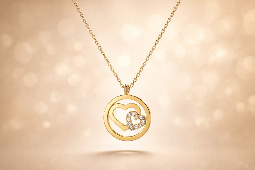 Sevginizi zarif bir dokunuşla ifade eden bu iç içe geçmiş kalpli altın kolyeyi hemen sipariş edin, kalbinizin anlamını altınla taçlandırın.