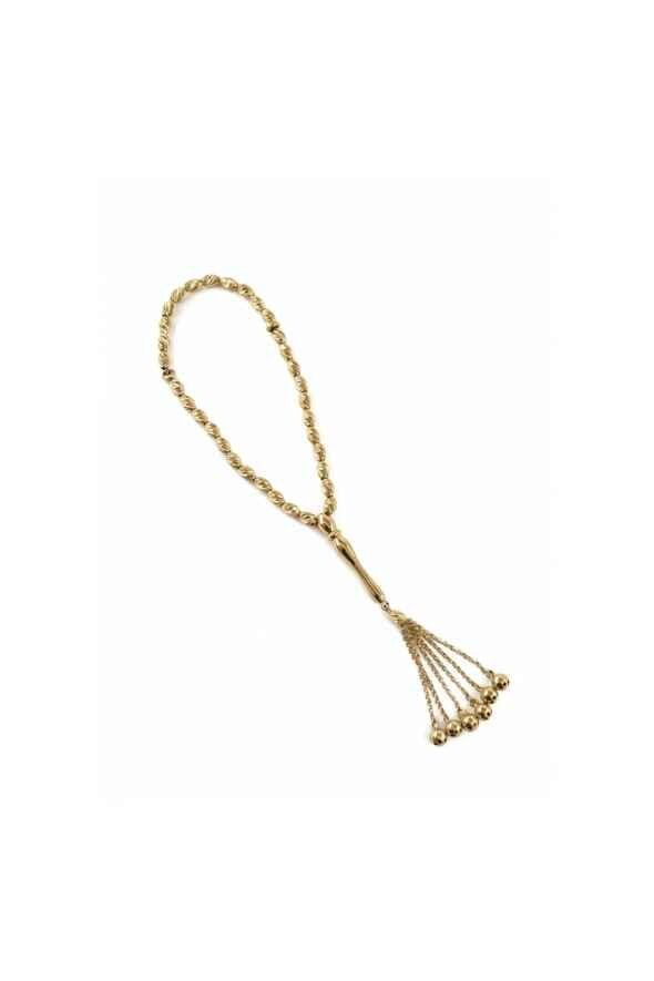 Kalemli altın tesbih, klasik işçiliği ve ince detaylarıyla zarafetin simgesidir. 14 ayar altından üretilen her bir boncuğu, ustalıkla işlenmiş parlak yüzeyiyle dikkat çeker. Hem koleksiyonlarda yer alabilecek kadar özel hem de günlük kullanımda zarif bir tamamlayıcıdır.