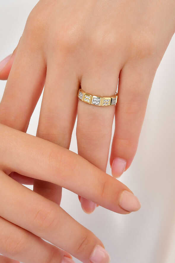 Parçalı tasarım altın alyans, farklı formların birleşimiyle modern bir görünüm sunar. 14 ayar altın kalitesiyle üretilen bu model, 2.94 gram ağırlığıyla hafifliği ve şıklığı bir araya getirir. Günlük kullanımda rahatlığıyla öne çıkarken özel günlerde de özgün tasarımıyla dikkat çeker.