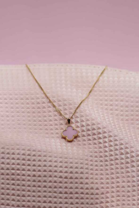 Şansın zarif halini yansıtmak için bu pembe yonca altın kolyeyi hemen sipariş edin.