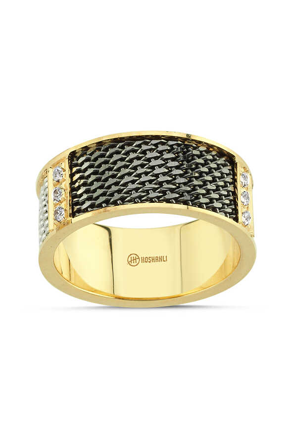 Tarzına güç katmak isteyenler için bu 14 ayar siyah örgü detaylı altın alyansı hemen sipariş edin.