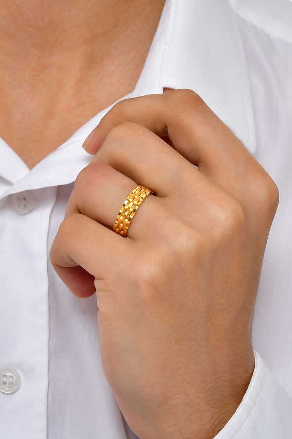 Tasarım altın alyans, kendine özgü dokusu ve modern çizgileriyle farklı bir tarz arayan çiftler için tasarlanmıştır. 22 ayar altının değerli parlaklığı, özel işçilikle oluşturulmuş geometrik desenlerle birleşerek alyansa sıra dışı bir estetik kazandırır. 3,69 gram ağırlığıyla günlük kullanıma uygun konfor sunan bu alyans, hem klasik hem de modern tarzları buluşturan bir şıklık sağlar. Çiftler için evliliği simgeleyen özel bir parça olmasının yanında, özgün tasarımı sayesinde ömür boyu severek kullanılabilecek bir modeldir.