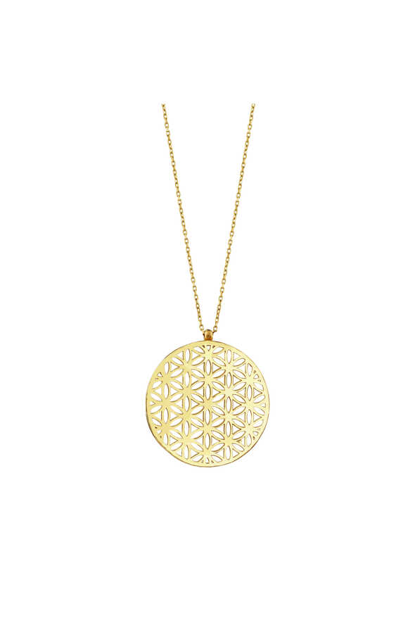 Yaşam Çiçeği Altın Kolye, tarih boyunca bereketi, uyumu ve yaşam enerjisini temsil eden bu kadim sembolü 14 ayar altının zarafetiyle bir araya getiriyor. 3.6 gramlık yapısı, ince işçiliği ve dengeli formuyla hem estetik hem de anlamlı bir duruş sunar. Günlük kombinlerden özel davetlere kadar zarafetiyle dikkat çeker, aynı zamanda anlamlı bir hediye olarak da tercih edilir.