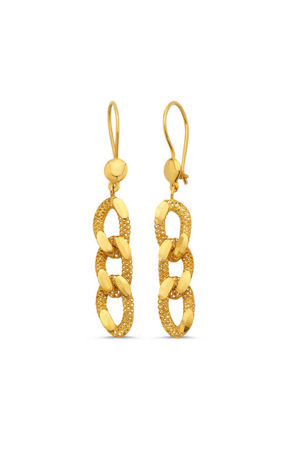 Modern çizgileriyle farklılık yaratan bu 22 ayar zincir altın küpeyi hemen sipariş edin.